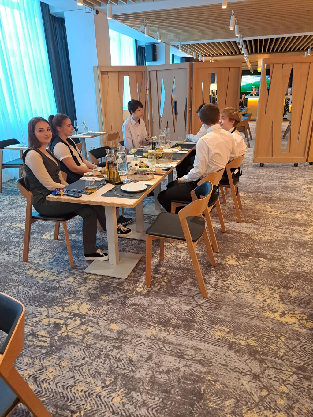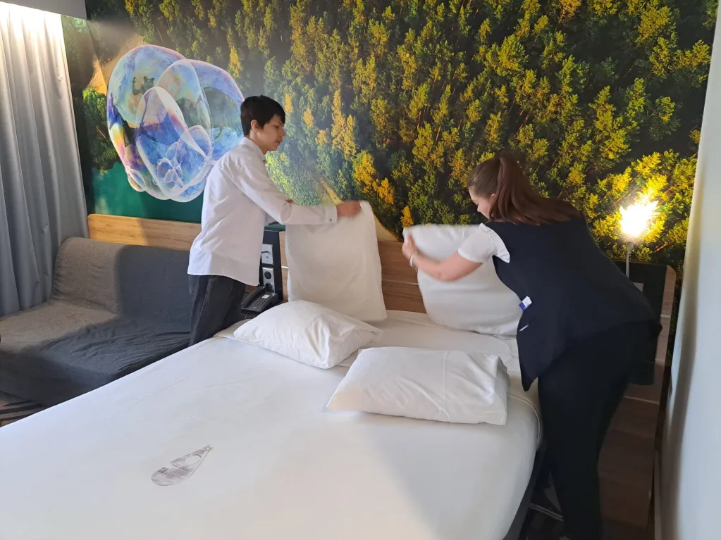Patryk, Marcin, Mateusz i Mateusz mieli okazję zobaczyć, jak wygląda codzienna praca w różnych działach hotelu – od działu relacji z Gośćmi, przez kuchnię i obsługę śniadań, aż po housekeeping. Dzięki temu mogli poznać specyfikę pracy w branży hotelarskiej oraz zdobyć nowe, cenne doświadczenia.