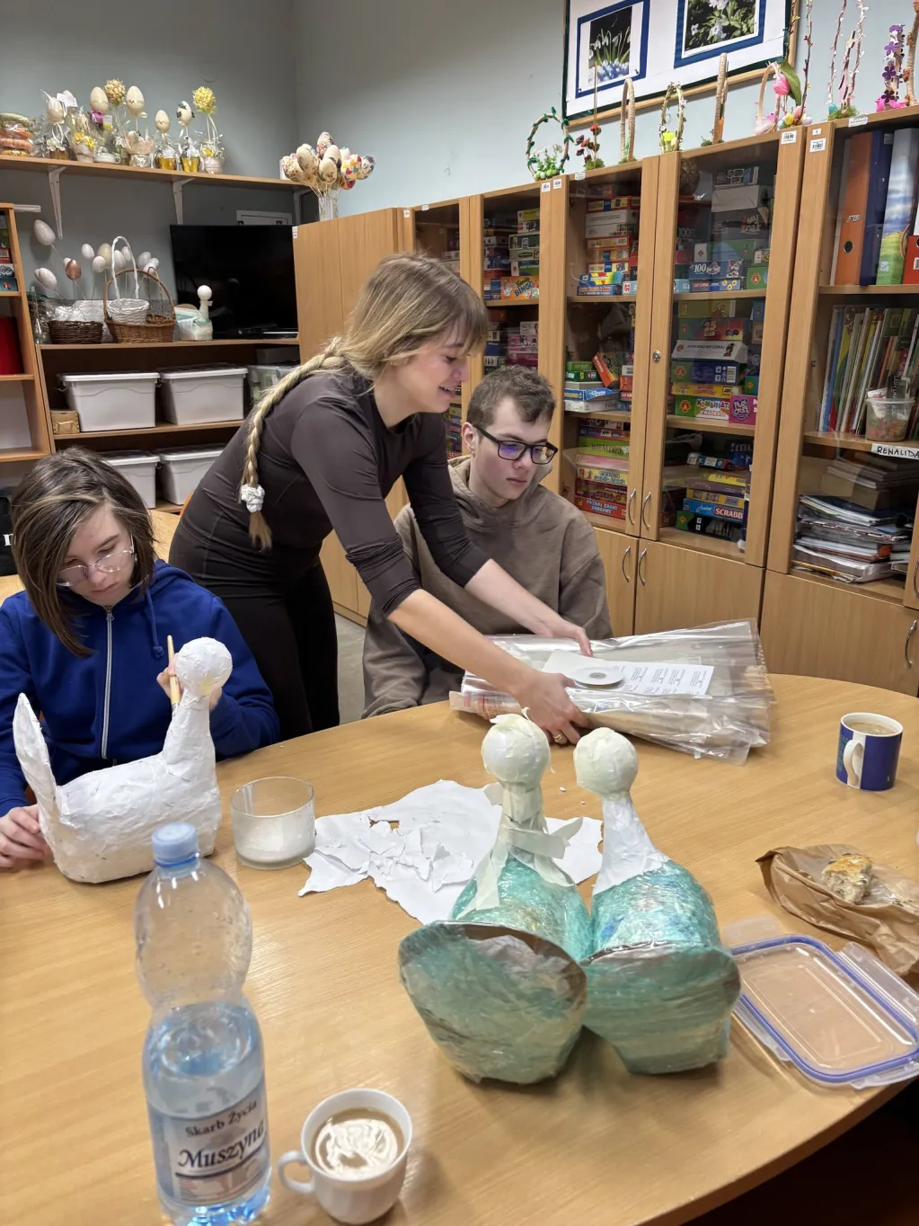 Uczniowie z ogromnym zaangażowaniem tworzą piękne, świąteczne ozdoby i dekoracje. Powstają kolorowe pisanki, wiosenne stroiki i wiele innych wyjątkowych prac, które już wkrótce będzie można zobaczyć na naszym kiermaszu.