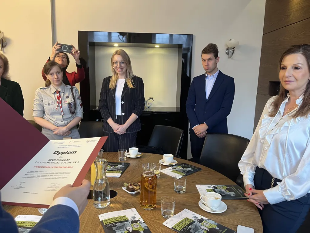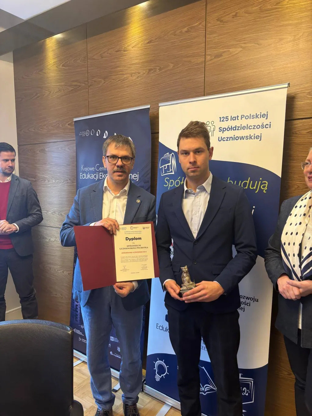Członkowie spółdzielni uczestniczyli w wyjątkowym spotkaniu, podczas którego Prezes Zarządu Warszawskiego Instytutu Bankowości, Pan Waldemar Zbytek, wręczył statuetkę „Spółdzielnia Uczniowska na Szóstkę”!