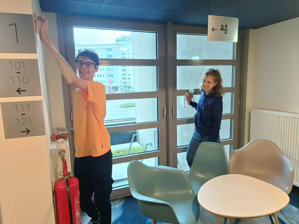 Młodzież z klasy 3a w roku szkolnym 2023/24 porządkuje pokoje w hotelu. Uczniowie w dwójkach przygotowują pokój na przyjście gości. Zdejmują brudną pościel, nakładają czystą, odkurzają i myją sprzęty, wynoszą śmieci. Dodatkowo sprzątają łazienkę. Umiejętności zdobyte na praktykach na pewno przydadzą się w dorosłym życiu.