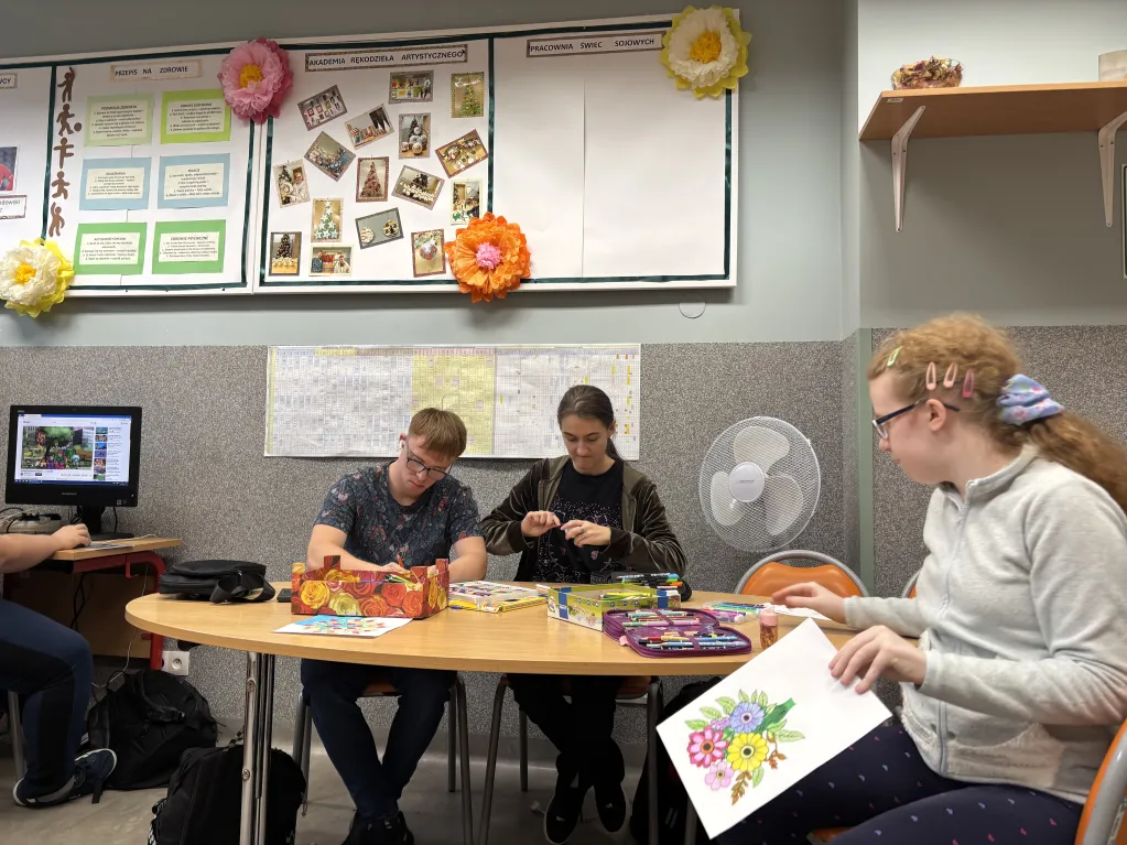 W świetlicy szkolnej uczniowie tworzą różnorodne prace plastyczne, techniczne i literackie.