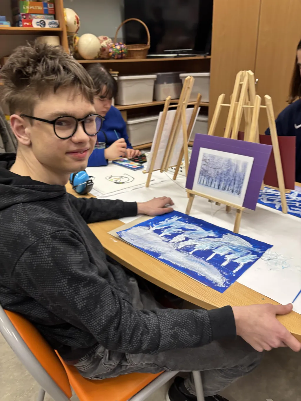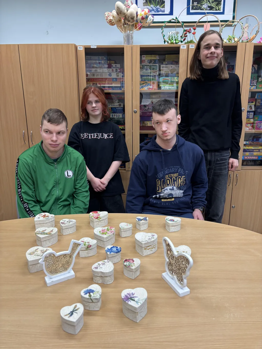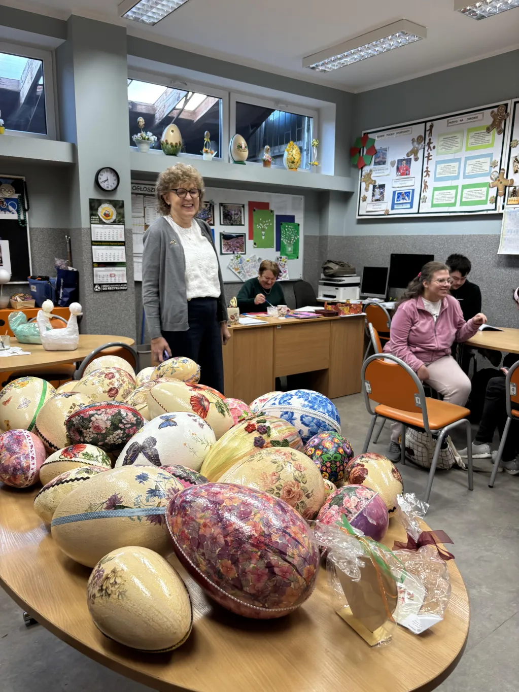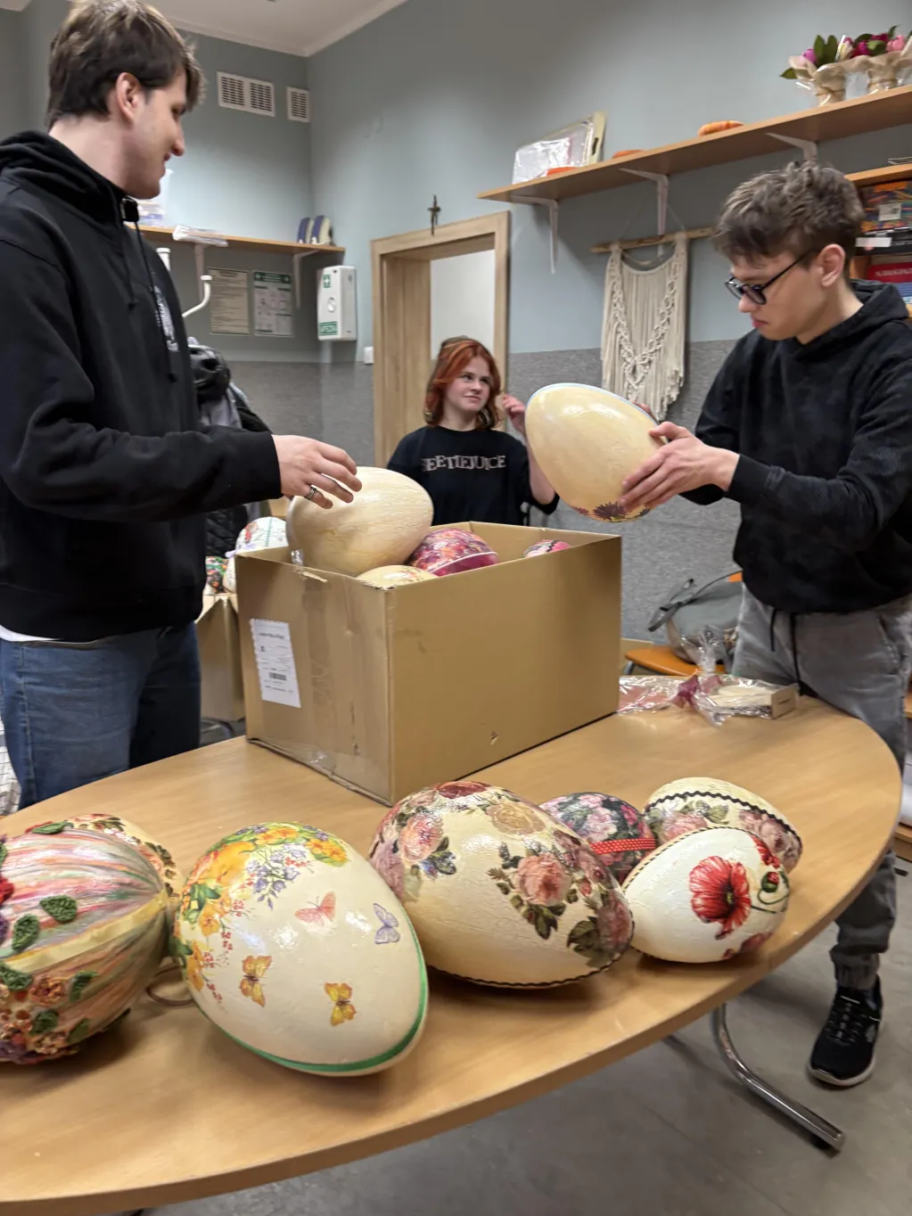 W Świetlicy szkolnej mimo zimy 🥶❄️ na zewnątrz powoli trwają przygotowania do kiermaszu Wielkanocnego🥚🐇🐣. Uczniowie pomagają przygotowywać różne świąteczne przedmioty. 😊