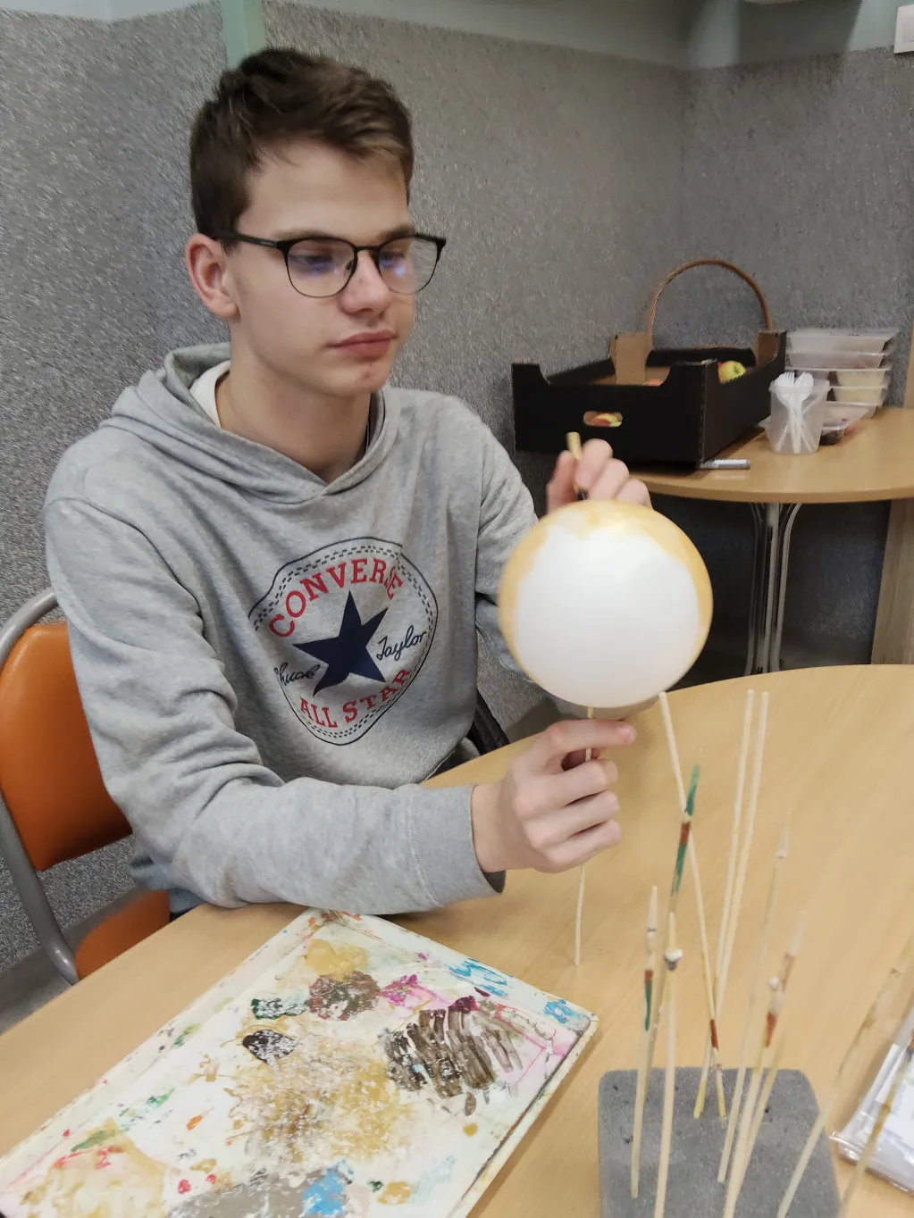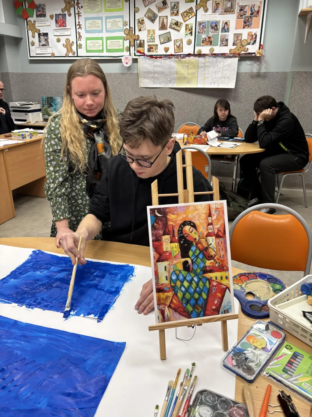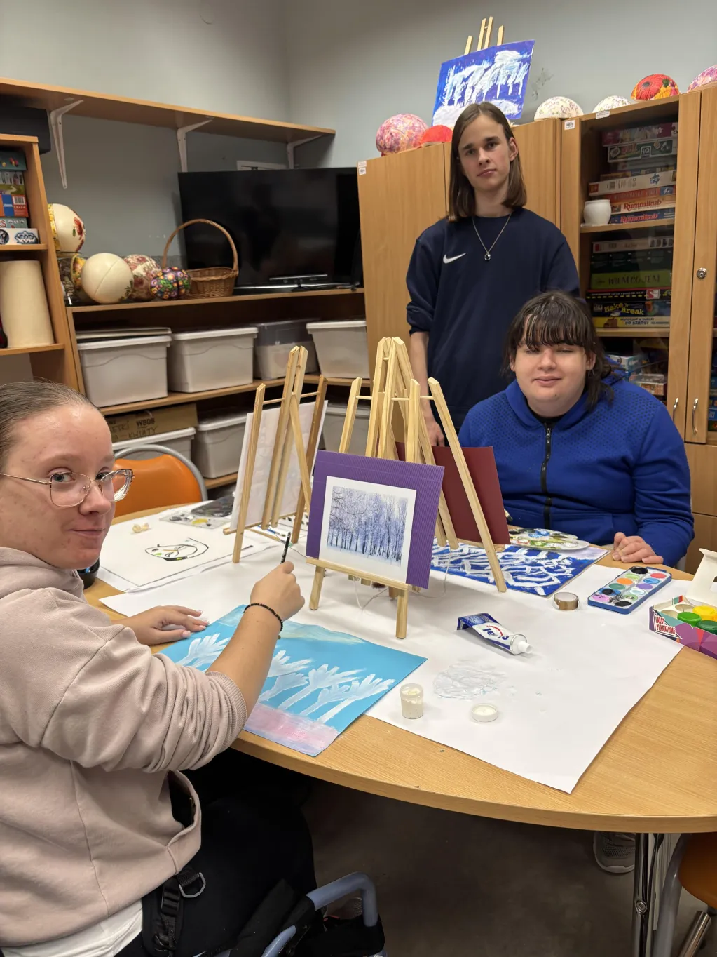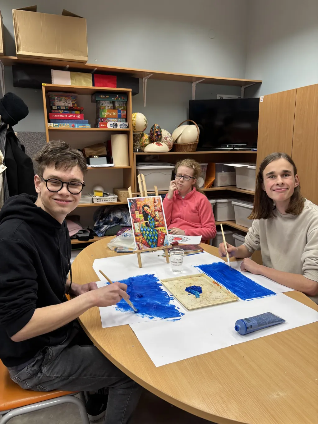 W Świetlicy szkolnej mimo zimy 🥶❄️ na zewnątrz powoli trwają przygotowania do kiermaszu Wielkanocnego🥚🐇🐣. Uczniowie pomagają przygotowywać różne świąteczne przedmioty. 😊
